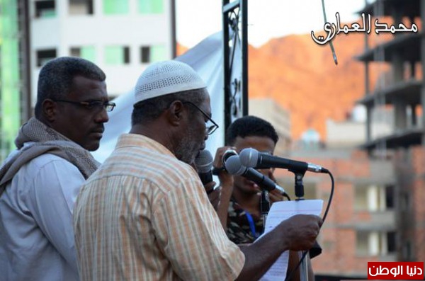 وتحدث الجوهي أيضاً على ضرورة عدم الاساءة إلى أبناء الشمال المقيمين في الجنوب أو التعرض لهم بالأذى، كما تطرق للصعاب والضغوط التي تتعرض لها ساحة الاعتصام بالمكلا ، وتشديده على رفض ومنع إدخال السلاح إلى الساحة.