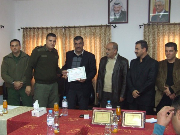 المقدم تيسير عزام درع شكر وتقدير لمدير جهاز الأمن الوقائي العميد أمين السويطي لحسن الاستقبال واستضافة الدورة في جهاز الأمن الوقائي.