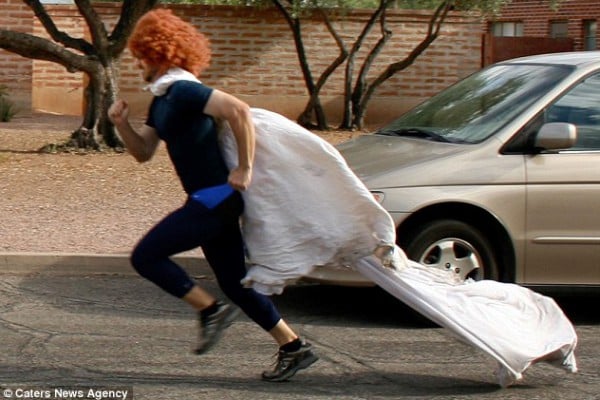 بدلا من البكاء على الماضي وندب حظه، قرر “كيفن كوتر” الانتقام من زوجته ، التي هجرته، بطريقة جديدة وفريدة من نوعها من خلال استخدام فستان الزفاف الخاص بها في صور ساخرة وكوميدية ظل يعمل عليها لمدة 4 سنوات كاملة.