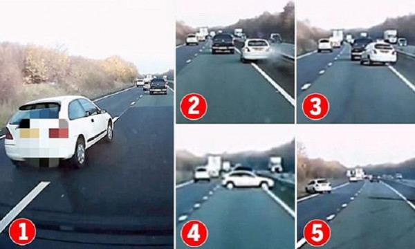 كشف شريط فيديو عن أغرب حادث على أحد الطرق السريعة في بريطانيا، حينما اصطدم قائد سيارة بالحاجز بين الاتجاهين ومن قوة الاصطدام دارت السيارة دورة كاملة 360 درجة، ثم أكمل السائق سيره كالمعتاد؛ بل زاد من سرعته.