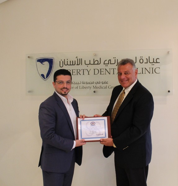 ثم زار الدكتور توماس جيونيس عيادة ليبرتي لطب الأسنان حيث منح عيادة ليبرتي شهادة تعتبر الأعلى التي يمنحها مجلس الصحة الامريكية في الجودة الطبية فيما يخص التعقيم والأنظمة الطبية الحديثة جاء ذلك بعد أن تم تقييم وتشخيص ادوات والية التعقيم في عيادة ليبرتي من قبل شركة مايكروسييف الشركة العالمية المختصة في تعقيم العيادات وقياس درجة التعقيم في تلك العيادات وحصلت عيادة ليبرتي على درجة تعتبر الأعلى عالميا" في مقياس التعقيم على مستوى العيادات والمشافي وبذلك تم منح هذه الشهادة للدكتور مجد ناجي مدير عام ليبرتي لطب الاسنان