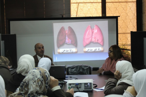 وقال المحاضرة أحمد سماعنة رئيس قسم التثقيف والتعزيز الصحي من مديرية صحة نابلس ان هذه المحاضرات تأتي ضمن نشاطات تقوم بها مديرية صحة نابلس حول مواضيع تتعلق بنمط الحياة الصحي موضحاان هذه المحاضرات تستهدف الواعظات لما تلعبه من دور حيوي وهام في المجتمع المحلي،ودورها في نشر الفضيلة والمعرفة،والقيم الايجابية والوصول الى اكبر شريحة من شرائح المجتمع.وتحدث سماعنة خلال المحاضرة عن التدخين والأرجيلة محذرا وبشدة من الآثار والعواقب الوخيمة للتدخين حيث أوضح سماعنة مكونات السيجارة والآثار المترتبة التي تصيب المدخن عند تدخينها من تصلب في الشرايين بما في ذلك الإصابة بمرض السرطان والآثار السلبية على الأوعية الدموية والجهاز العصبي عند الإنسان، وتطرق الى التدخين السلبي، واعتبر أن حضور المدخن في بيئة مدخنة له نفس التأثير للتدخين المباشر.
