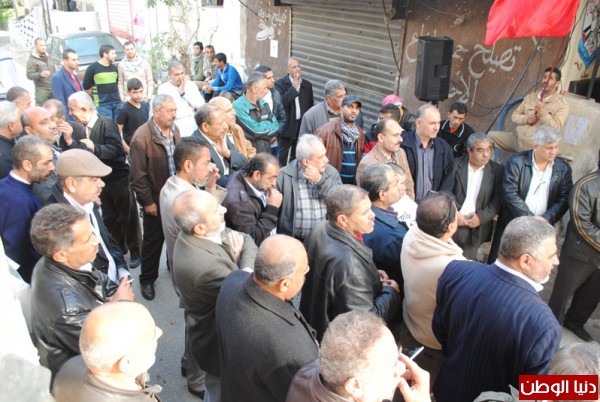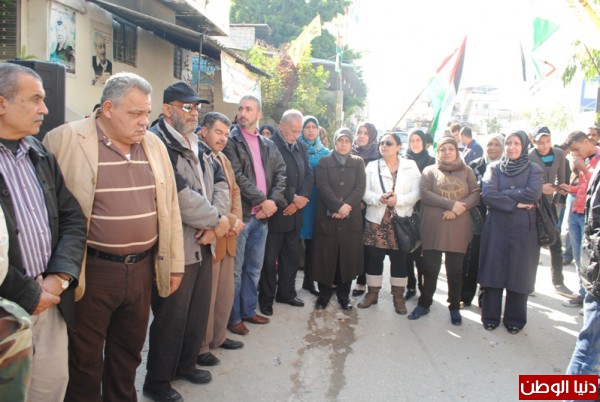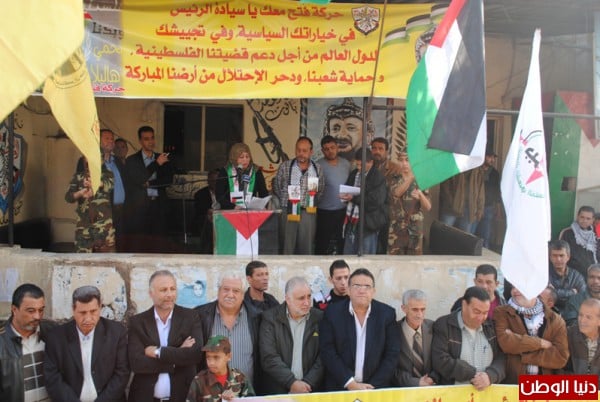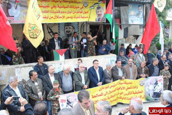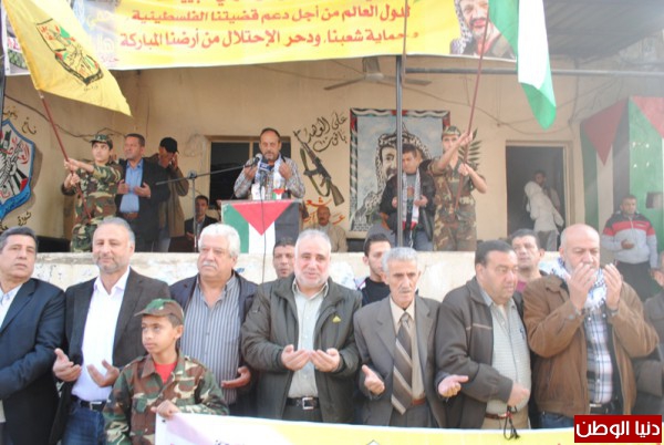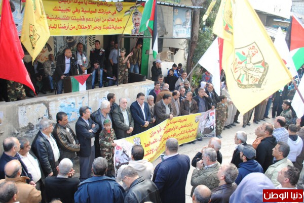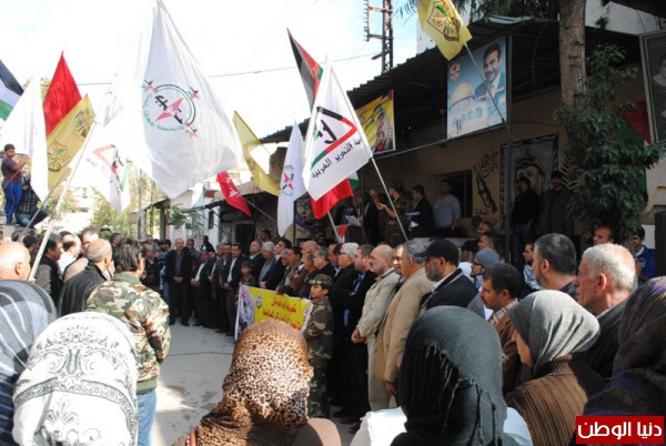 اقامت منظمة التحرير الفلسطينية وحركة التحرير الوطني الفلسطيني فتح وقفة تضامينة بمناسبة يوم التضامن مع الشعب الفلسطيني واعلان الدولة الفلسطينية في ذكراها التانية لقاءا وطنيا فلسطينيا لبنانيا حاشدا امام مقر شعبة عين الحلوة,وسط حضور لبناني - فلسطيني من الاحزاب و القوى الوطنية والاسلامية اللبنانية والفلسطينية و وممثلي فصائل منظمة التحرير الفلسطينية ,التحالف الفلسطيني ,انصار الله ,جمعية المشاريع الخيرية ,اللجان الشعبية ,المكاتب الحركية والاتحاد العام للمراة الفلسطينية والمؤسسات الاهلية والشعبية وقيادة منطقة صيدا و امناء سر شعب التنظيمية وضباط الامن الوطني وكوادر في حركة فتح ,تقدم الحضور امين سرفصائل م.ت.ف وحركة فتح العميد ماهر شبايطة ,وممثل حركة الامل الاخ بسام كجك ,ممثل نائب بهية الحريري الاخ وليد صفدية ,ممثل التنظيم الناصري عضو اللجنة المركزية لتنظيم الشعبي الناصري الاخ محمد ضاهر ,وحشد جماهيري من مخيمات صيدا واقليم الخروب .