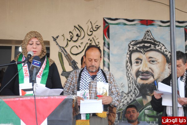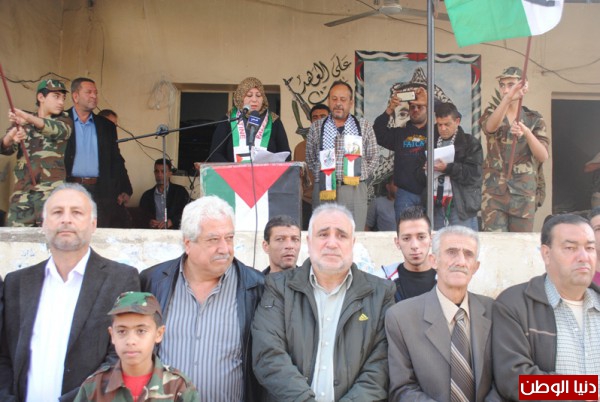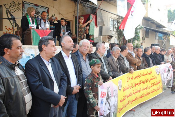 ابو مازن ,وبعدها كانت كلمة الاولى الى مسؤولة المكتب الحركي للمراة الفلسطينية لحركة فتح في منطقة صيدا الاخت امال شهابي قالت فيها الاخوة قادة العمل الوطني والاسلامي واللبناني والفلسطيني الاخوة الحضور نحيي اليوم ذكرى تقسيم بلادنا الى ثلاث اجزاء ,وما عرف حينها بقرار التقسيم الدولي .. كان ذلك عام 1947اي قبل النكبة بعام واحد ..تذرع العالم كله بان اليهود قد ظلموا وعليهم ان ياخذوا حصتهم من الارض ,فكان تقسيم فلسطين الى دولة يهودية واخرى عربية والقدس منطقة دولية ...