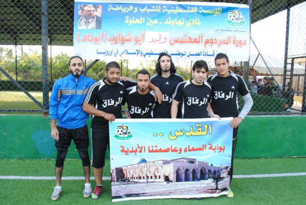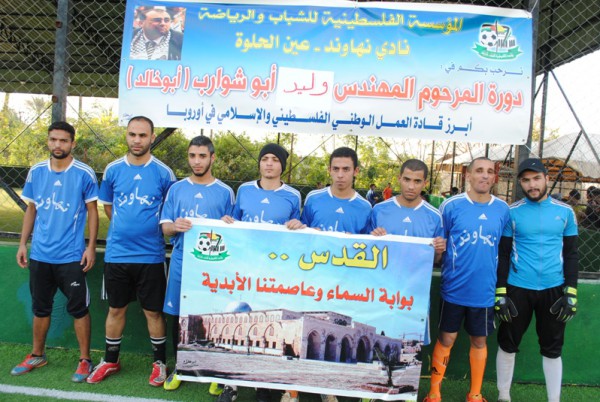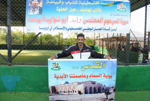 تكريما ووفاء لما قدمه في خدمة القضية الفلسطينية في اوروبا ,اقامت المؤسسة الفلسطينية للشباب والرياضة دورة في كرة القدم شارك فيها عدة فرق من مخيم عين الحلوة وذلك في مجمع منصورعزام الرياضي في مخيم عين الحلوة ,وقدم مدير المؤسسة في لبنان الاستاذ خليل العلي نبذه عن حياة الفقيد المهندس وليد ابو شوارب _او خالد احد قيادات العمل الوطني الفلسطيني والاسلامي في القارة الاوروبية وافته المنيه ظهر يوم الخميس الموافق 18سبتمبر في العاصمة الالمانية برلين ,بعد مسيرة طويلة من العمل الدؤوب في خدمة الجالية الفلسطينية والعربية والمسلمة في المانيا ,ودفاعا عن قضية فلسطين وشعبها وحقه في العودة الى دياره ,ترك خلفه رصيدا كبيرا من الانجازات والقيم الوطنية التي رسخها في كل اماكن غربته ,التي امتدت من المخيم النصيرات في قطاع غزة لتنتهي على فراش المرض الذي انهك جسده في المانيا التي وصلها منذ العام 1982.