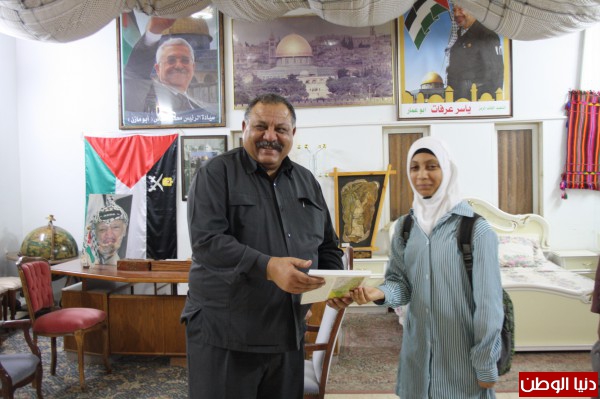 سلم مدير مكتب المحافظ ماجد مشارفة كتب تعليمية لطالبات من مدرسة بنات اريحا الثانوية ضمن حملة القراءة التي تتفذها المدرسة مع المجتمع المحلي وذلك في مقر المحافظة بحضور المعملة ماجدة براهمة .
