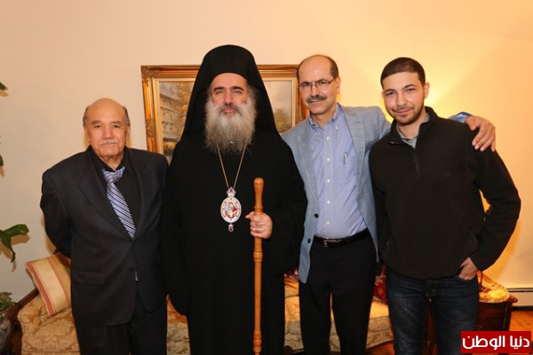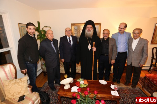 إلتقى المطران عطا الله حنا أبنا الجاية الفلسطينة والجاليا العربية في الولايت المتحدة الأمريكية حيث تم التداول في احوال الجالية الفلسطينية و ضرورة توحيد الصفوف و ترتيب البيت الفلسطيني بهدف تفعيل و انجاح دور الجالية في ابراز عدالة القضية الفلسطينية في المجتمع الامريكي.