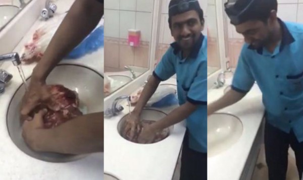 منوعات عامل يغسل لحوماً في مغسلة أيدي بمطعم شهير 2014-12-06 رابط مختصر: تابعنا أيضا عبر تويتر @alwatanvoice