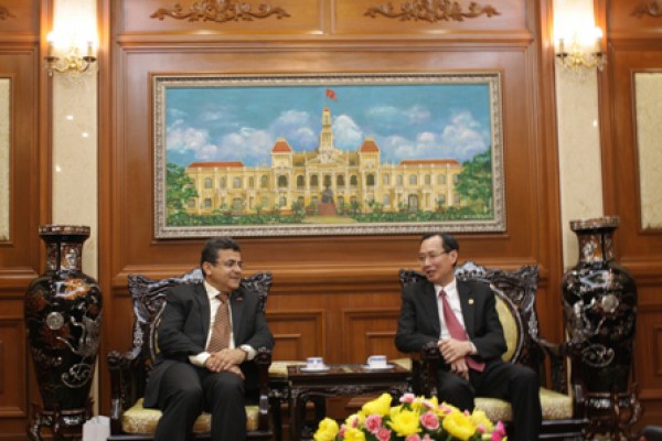 وعبر له عن سعادته بزيارة المدينة التي تحمل أسم القائد الفيتنامي البارز " هو شي مينه" كما تم البحث في آليات الدفع بتلك العلاقات على كافة المستويات وأمكانية تأسيس جمعية للصداقة الفيتنامية الفلسطينية لمدينة هو شي مينة. من جهته أكد وكيل المحافظه على المواقف الثابته لفيتنام ولمدينة هوشي مينه في التضامن مع الشعب الفلسطيني ورحب بتنظيم المزيد من الفعاليات التضامنة مع شعبنا الفسطيني وكفاحة العادل، وأضاف بأن فيتنام ستبقى وفيه للشعب الفلسطيني الصديق وكفاحة