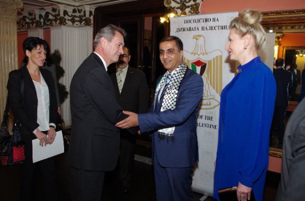 وكان على رأس المتضامنين مع قضية فلسطين وشعبها السفير بوريسلاف كوستوف رئيس مديرية العلاقات الثنائية في وزارة الخارجية ممثلا لمعالي وزير الخارجية السيد دانييل ميتوف، بالاضافة الى رئيس دائرة الشرق الاوسط وافريقيا ومسؤول ملف فلسطين في وزارة الخارجية البلغارية، ووزير الداخلية السابق، ورئيس البرلمان الاسبق، ومفتي الجمهورية، كما حضر الاحتفال عدد من نواب البرلمان وممثلي عن الاحزاب السياسية وممثلي مختلف الوزارات البلغارية ومؤسسات المجتمع المدني البلغاري وممثلي عن المؤسسات الدولية، وممثلين عن النقابات وجمعية الصداقة البلغارية الفلسطينية وجمع غفير من المتضامنين البلغار وابناء الجاليات العربية والفلسطينية.