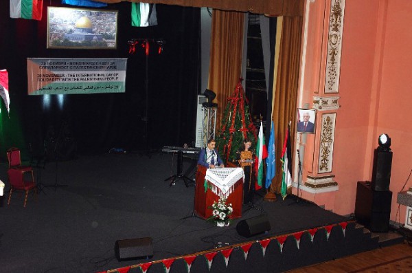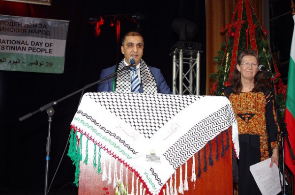 أحيت سفارة دولة فلسطين في صوفيا، في التعاون مع وزارة الخارجية لجمهورية بلغاريا، وممثلية الأمم المتحدة اليوم العالمي للتضامن مع الشعب الفلسطيني. وقد أقيم الاحتفال في قاعة الاحتفالات الرسمية في النادي العسكري التابع لوزير الدفاع البلغاري، ورغم كبر القاعة الا انها لم تتسع لكل الذين حضروا للتضامن مع شعبنا، وتم تزيين القاعة بالاعلام والصور الفلسطينية.