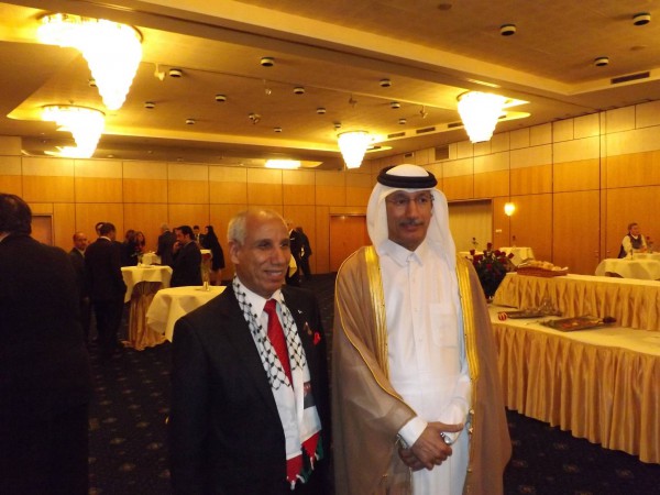 تلبية لدعوة من السفير القطري في رومانيا "سعد محمد القبيسي " قام الدكتور محمد عياش الرئيس الفخري للجاليات الفلسطينية في أوروبا بالمشاركة في احتفالات العيد الوطني القطري , وفور وصول الدكتور عياش إلى قاعة الاحتفال كان باستقباله أعضاء السفارة القطرية وعلى راسهم السفير التي استقبل الدكتور عياش استقبالا مميزا يعكس المحبة والتقدير التي يكنها سعادته لشخص الدكتور عياش .