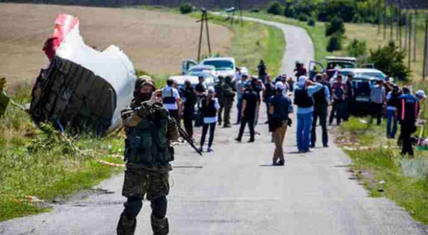 أحد الجنود الأوكرانيين الموالين لروسيا أمام حطام الطائرة الماليزية التي سقطت في يوليو الماضي