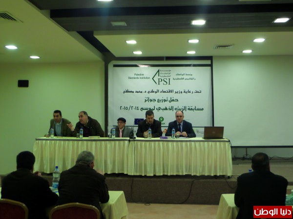 اقامت اليوم مؤسسة المواصفات والمقاييس حفل تكريم للفائزين بمسابقة زيت الزيتون الذهبي برعاية مؤسسة اوكسفام الدولية ، بالتعاون مع وزارة الزراعة ، جامعة بيت لحم، مجلس الزيت