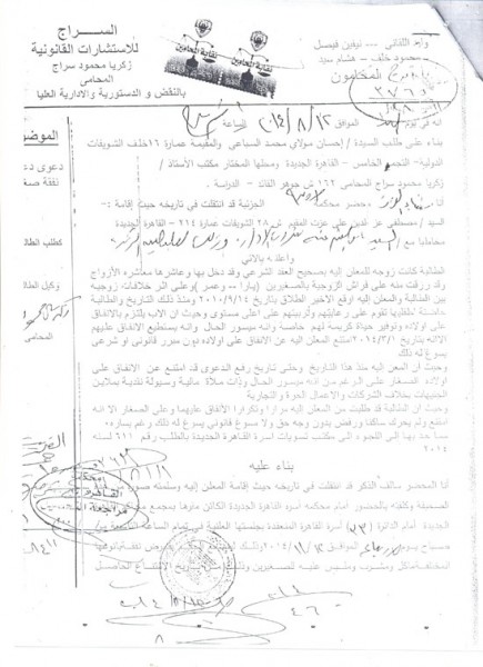 ينشر "اليوم السابع" مستندات جديدة تفيد تهرب "مصطفى عز" شقيق "النجم الوسيم"، من الإنفاق على نجليه "يارا وعمر"، وذلك بعدما أقامت طليقته "إحسان مولاى محمد" برفع دعوة قضائية عليه لعدم إنفاقه على نجليه منذ فترة طويلة، مما جعلها تلجأ إلى مكتب تسويات أسرة القاهرة الجديدة بالطلب رقم 611 لسنة 2014. و
