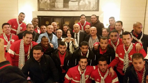وشارك نجوم أراب آيدل الرئيس الفلسطيني استقباله للمنتخب الوطني الأول لكرة القدم في وداعه الى كأس آسيا 2015 وذلك في فندق الجراند بارك برام الله .
