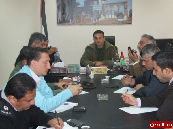 بتوجيهات قائد منطقة جنين وطوباس العقيد ركن محمد ابو هيفاء عقد في غرفة العمليات المشتركة اجتماع خلية إدارة الأزمات والكوارث الطبيعية مع مدير العمليات المشتركة المقدم طه الفرا وممثل عن محافظ محافظة جنين السيد القسام وممثل شؤون المحافظات عبد المنعم فرحات وممثل عن مكتب تنسيق الشؤون الإنسانية