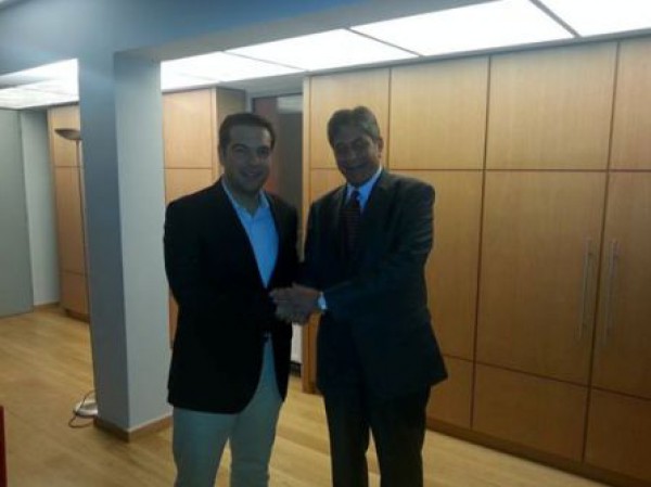 لتقى سفير دولة فلسطين لدى اليونان مروان طوباسي بزعيم المعارضة في البرلمان اليوناني رئيس حزب حركة اليسار اليوناني " سيريزا " اليكسي تسيبراس.