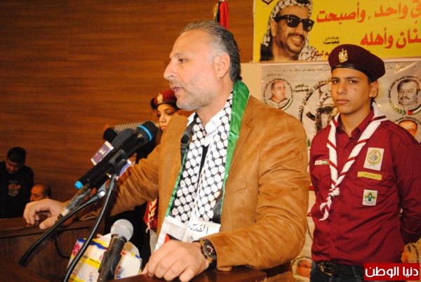 وكان عريف الحفل مسؤول الاعلام لحركة فتح في منطقة صيدا الاخ ابراهيم الشايب بدها بالترحيب بالحضور جميعا كلن بصفته واسمه وبعدها قدم النشيدين الوطنيين اللبناني والفلسطيني ونشيد حركة فتح وقراءة سورة الفاتحة على ارواح شهداء وعلى راسهم الشهيد القائد الرمز ياسر عرفات .