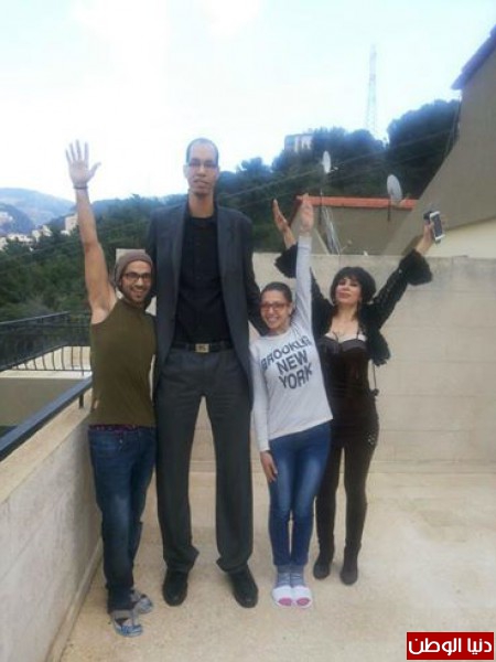 التقت الممثلة السورية ليلى سمور بأطول رجل بالعالم صدفة أثناء تصويرها مسلسلها الجديد .