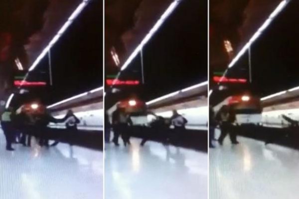 ويستمر الفيديو في عرض اللحظات المروعة لمقتل الشرطي، حيث حاول التصدي لهجوم الإيفواري عليه، قبل أن يسقطا الاثنان أمام أحد القطارات القادمة عبر السكة الحديدية قبل أن يشيح المصور بنظره بعيداً من فظاعة الموقف.