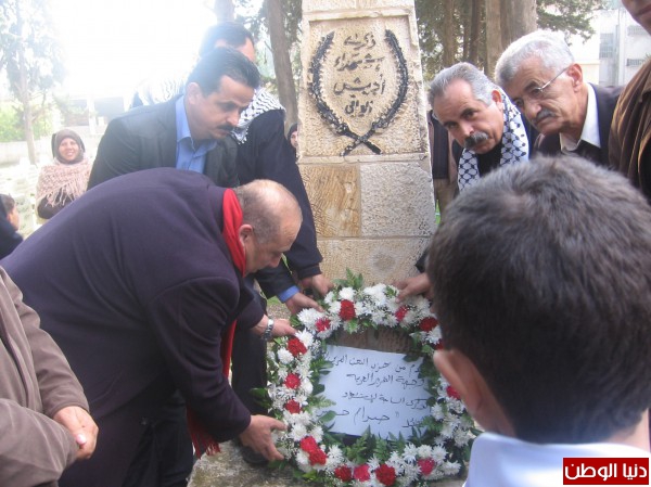 والقى الاستاذ عمر ذياب مدير مدرسة نابلس الثانوية الصناعية والتي على ارضها مقام نصب شهداء الجيش العراقي كلمة حيا فيها قيادة كوادر وانصار جبهة التحرير العربية لاهتمامهم باحياء ذكرى استشهاد الرئيس صدام حسين والخالد في وجدان وضمير الشعب العربي الفلسطيني .