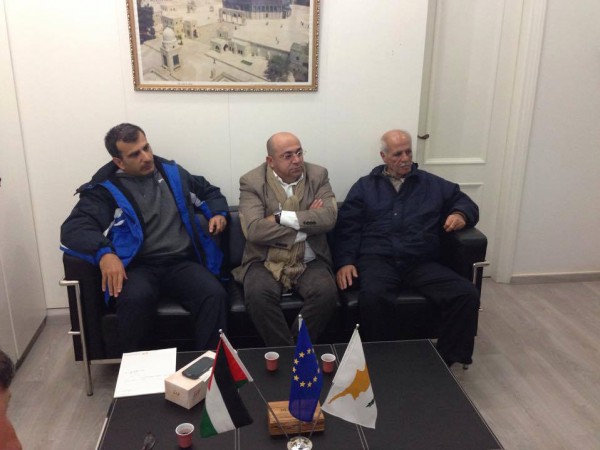 تواصلاً لدورها في متابعة قضية اللاجئين الفلسطينيين الذين وصلوا قبرص هرباً من أتون الصراع الدائر في سوريا ، عقدت الجالية الفلسطينية في قبرص ووفد ممثل عن اللاجئين الفلسطينيين في المخيم المؤقت المقام في العاصمة نيقوسيا ، إجتماعاً هاماً يوم أمس الإثنين مع سفير دولة فلسطين في قبرص السيد وليد حسن في مقر السفارة الفلسطينية في العاصمة نيقوسيا.