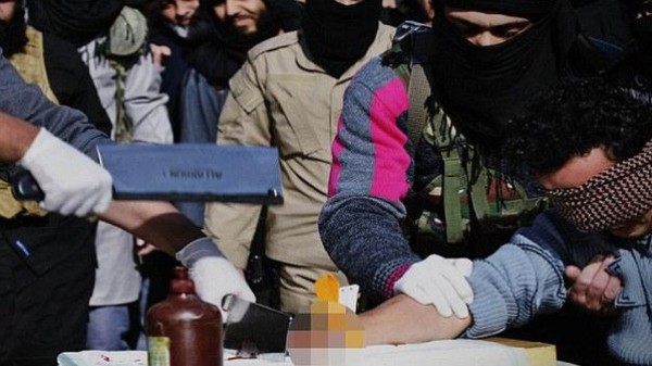 بالصور.. داعش يقطع يد متهم بالسرقة في سوريا