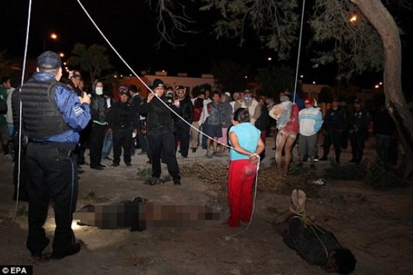 وذكرت صحيفة “ديلي ميل” البريطانية، أن 100 شخص تقريبًا اكتشفوا اللصوص الأربعة يسرقون أجهزة إلكترونية من منزل في مدينة “تهواكان” بولاية بويبلا.