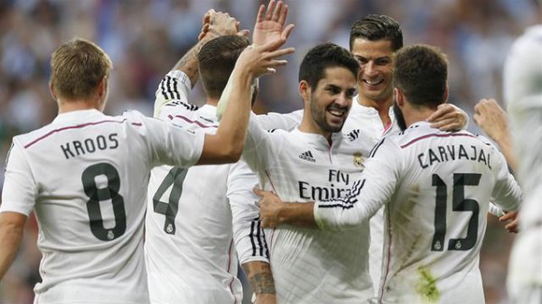 وسجل ثلاثية النادي الملكي كلاً من صانع الألعاب الكولومبي جيمس رودريغيز في الدقيقة 12 وأضاف الجناح الويلزي غاريث بيل الهدف الثاني من ركلة حرة مباشرة في الدقيقة 28، قبل أن يختتم الظهير ناتشو فيرنانديز الثلاثية في الدقيقة 76 من زمن المباراة .