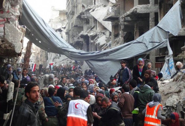 "اطلاق نار وإتهامات متبادلة تتسبب بتوقف توزيع المساعدات في اليرموك المحاصر"