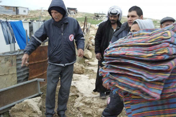 محافظة القدس والهلال الاحمر الفلسطيني تقدم المساعدات الانسانية لبدو المنطار