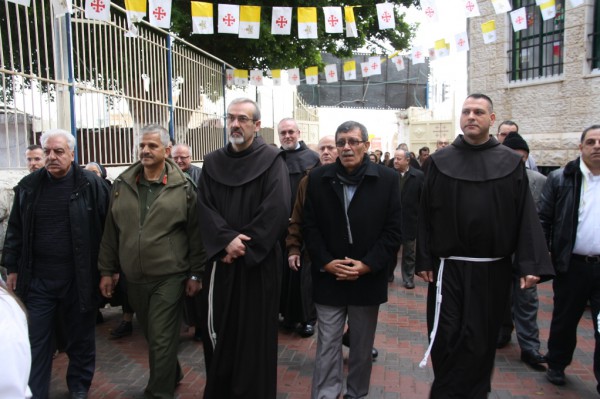 واشاد المحافظ الفتياني بالنسيج الاجتماعي بين مسلمي ومسيحيي فلسطين وقال ان الشعب الفلسطيني بمسلميه ومسيحيه موحد ويسعى لنيل الحرية والخلاص من الاحتلال.