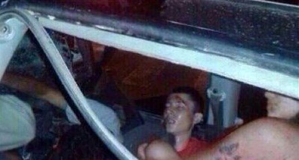 أرفقت المعلومات عن الحادث بصورة السيّارة المحطّمة، وبصورتين لشاب وفتاة عاريين وقد تلطّخ جسداهما بالدماء.