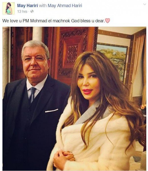 وعلَّقت حريري على الصورة قائلةً: We love u PM Mohmad el machnok God bless u dear، أي نحبك يا رئيس الوزراء محمد المشنوق.. بارك الله فيك يا عزيزي”.
