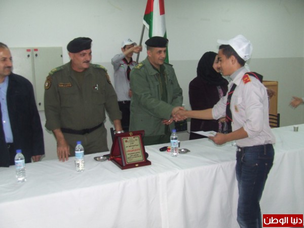 وفي نهاية الحفل قدم نائب قائد المنطقة المقدم محمد سلامة ومديرة التربية والتعليم في محافظة جنين السيدة سلام الطاهر شهادات تقدير وهدايا رمزية للطلبة المشاركين في المعسكر، وأثنى سلامة على جهود مديرية التربية والتعليم في محافظة جنين في إقامة مثل هذه البرامج والتي تهدف الى تعزيز الانتماء الوطني والضبط والربط لدى الفرد في المجتمع والمدرسة.