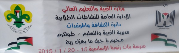 إفتتحت مديرة التربية والتعليم نائلة عودة ومدير دائرة الكشافة والمرشدات في وزارة التربية والتعليم ورئيسا قسم الكشافة والمرشدات في الوزارة ناصر الفيه وسحر مجدوبة مخيمي الكشافة والمرشدات في مدرستي الحمد الله وزنوبيا المخيم الشتوي الاول والذي يأتي بناء على برامج الإدارة العامة للنشاطات الطلابية - دائرة الكشافة والمرشدات.