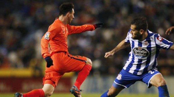 وبدأ برشلونة المباراة امام ديبورتيفو لا كورونيا بقوة ولاحت له الفرصة الجدية الاولى في الدقيقة العاشرة عندما نفذ الكرواتي ايفان راكيتيتش ركلة ركنية وصلت على اثرها الكرة الى ميسي الذي سددها باتجاه المرمى بيد ان الحارس فابريسيو اغوستو ابعدها فارتطمت بالعارضة وخرجت (10).