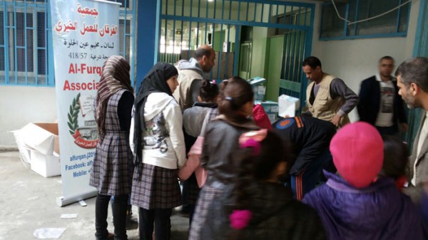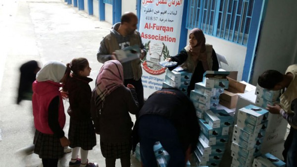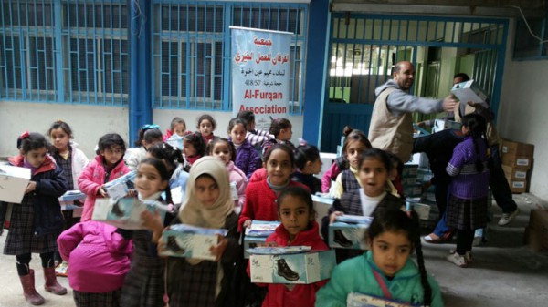 ضمن مشاريعها الخيرية المستمرة دون توقف لتخفيف المعاناة عن اهلنا النازحين من سوريا قامت جمعية الفرقان ممثلة بمديرها التنفيذي الأستاذ خالد زعيتر يرافقه مسؤول ملف النازحين رمضان محمد واعضاء من الجمعية بزيارة لمدرسة الناقورة للبنات في مخيم عين الحلوة حيث وزعوا احذية شتوية للطالبات النازحات من سوريا مقدمة من فاعلي الخير.