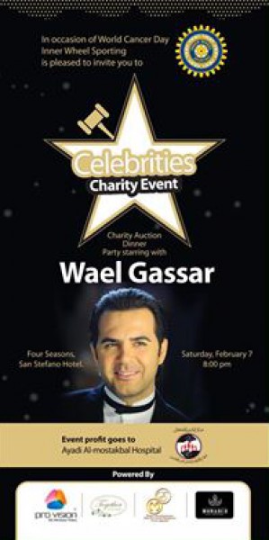 يقوم السوبر ستار اللبناني المطرب وائل جسار بإحياء حفلا خيريا وذلك بمدينه الاسكندريه يوم السبت 7 فبراير بالفورسيزونز .