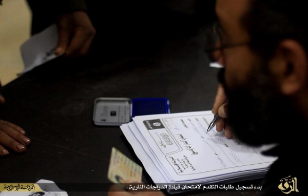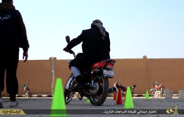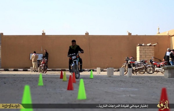 نشر أحد المواقع التابعة لتنظيم داعش، تقريراً مصحوباً بصور تظهر الدواعش أثناء تسجيلهم لدى "مركز تعليم قيادة الدراجة النارية في ولاية الرقة".