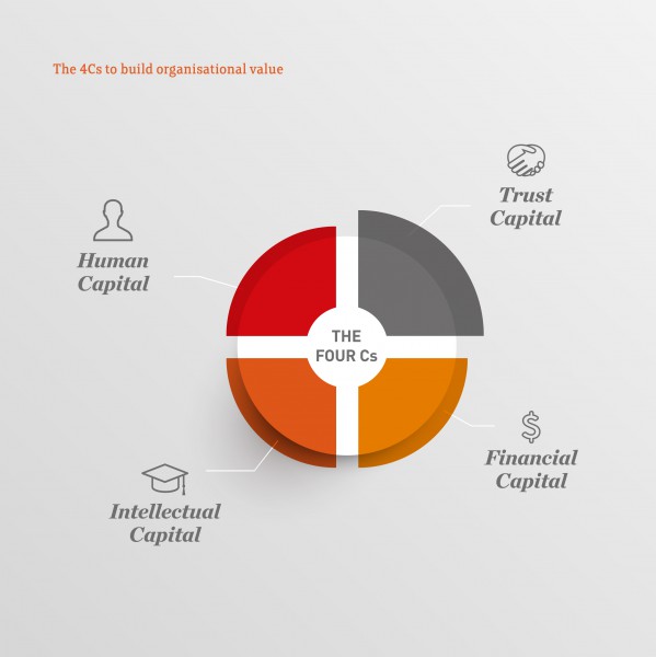 وتقوم العديد من الشركات بالتركيز على العناصر الثلاث للقيم المؤسسية: وهي رأس المال البشري والمالي والفكري. اليوم، يجب على الشركات إضافة عنصر رابع: وهو توليد وتعزيز ونمو رأس مال الثقة، والذي يمثل ثقة العملاء في مصداقية ونزاهة وريادة ومسؤولية مؤسسة ما وعلاماتها التجارية. ويلقي التقرير الضوء على كيفية بناء المؤسسات لرأس مال الثقة، ويقدم برنامج عمل يمكن للمؤسسات اتباعه لبناء ثقة العملاء في مختلف المناطق الجغرافية.