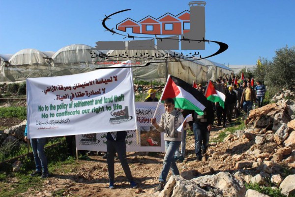 ورفع المشاركون الأعلام الفلسطينية واللافتات المنددة بسياسة الإحتلال الإستيطانية داعين إلى تعزيز المقاومة الشعبية والحفاظ على الأرض ومواجهة الإعتداءات الإسرائيلية بحق الأرض الفلسطينية .