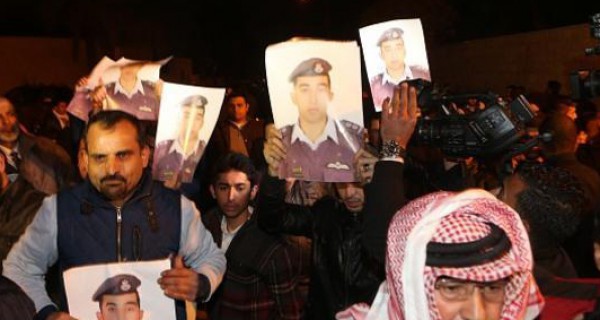 من جانبهم اعتصم ذوو الطيار الكساسبة وأقرباؤه أمام القصر الملكي غربي العاصمة عمان، وطالبوا الحكومة الأردنية بتلبية شروط عناصر داعش للإفراج عن الطيار.