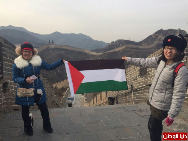 هذه بعض الصور من على قمم سور الصين العظيم يظهر فيه التعاطف الدائم للشعب الصيني مع القضية الفلسطينية وحبهم لدولة فلسطين