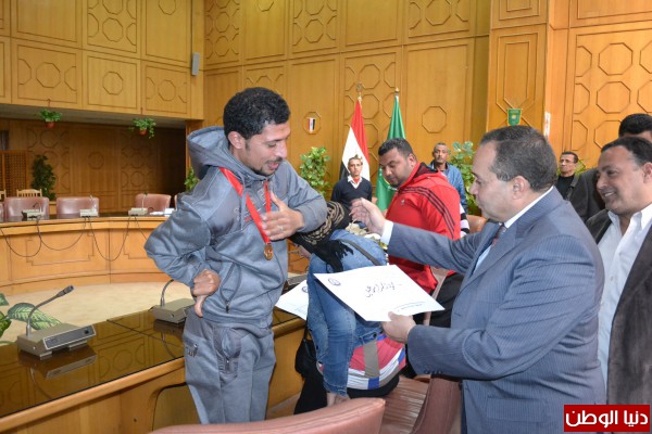 وقد شمل التكريم كل من اللاعب أيمن السيد عبد الفتااح الحاصل على الميدالية الذهبية فى رمى الرمح وبرونزية دفع الجلة واللعب محمد أحمد فرغلى الحاصل على ميدالية فضية فى دفع الجلة واللعب خالد على محمد خليل فضية دفع الجلة ومحمد شريف محمد غريب ذهبية رمى الرمح وفضية رمى القرص واسلام غريب فهمى محمد ذهبية رمى القرص ةفضية دفع الجلة واللاعبة رشا محمد محمد حسن فضية دفع الجلة ودعاء صدقى محمد ذهبية دفع الجلة وشيماء عبيد عباس ذهبية رمى الرمح وبرونزية دفع الجلة واللاعب شاهين السيد عبد الحليم ذهبية 100 متر عدو وذهبية 200 متر عدو والذى حقق رقما قياسيا جديدا محطما الرقم الأفريقى والعربى فى مسابقة 200 متر عدو ومحمود أحمد اسماعيل ذهبية 100 متر عدو وبرونزية الوثب الطويل وأخيرا اللاعب أحمد ابراهيم عليوة الحائز على ميدالية فضية لسباق الـ100 متر عدو وبرونزية الوثب الطويل .