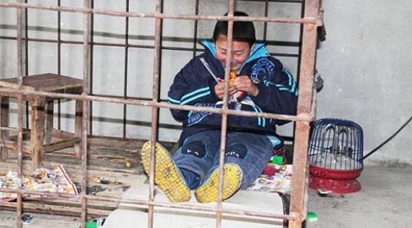 اضطر أب صيني إلى احتجاز ابنه الذي يعاني من اضطرابات نفسية داخل قفص حديدي في المنزل، لمنعه من الاعتداء بالضرب على شقيقته، وتدمير ممتلكات الجيران عند غيابه في العمل.