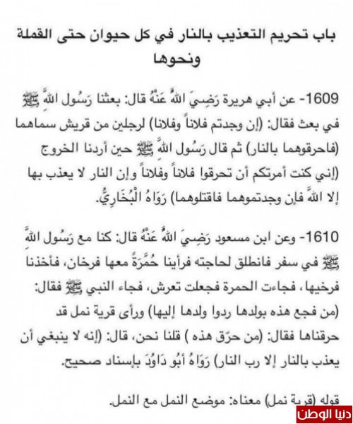 وشدد على أن الاسلام يمنع القتل بالحرق ,لافتا الى أن القتل بالحرق ينهي عنه الإسلام تماما.