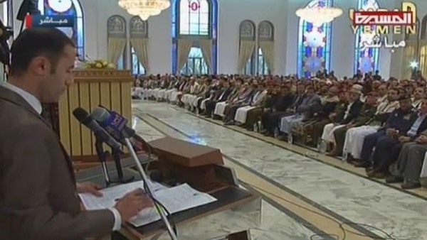 أصدر الانقلابيون الحوثيون إعلاناً دستورياً لإدارة البلاد بعد إحكام سيطرتهم على كافة مفاصل الدولة، وشمل الإعلان الدستوري، الذي تم إصداره في مؤتمر عقد في القصر الجمهوري بالعاصمة صنعاء، حل البرلمان وتشكيل مجلس بديل من 551 عضواً يقوم بانتخاب مجلس رئاسي مكون من خمسة أفراد.