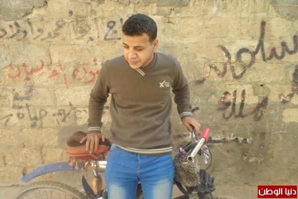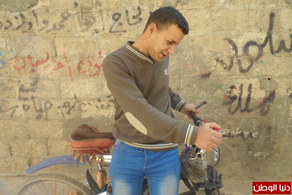 يطمح أن يكون قاضياً بغزة.. محمد جندية: كفيف جامعى يقود الدراجة الهوائية بإحساسه.فيديو وصور